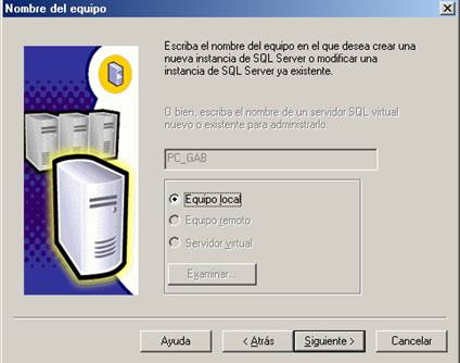 3) En la ventana de instalación seleccionar ‘Equipo Local’