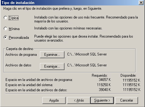 7) En la ventana Tipo de instalación seleccionar ‘Personalizada’