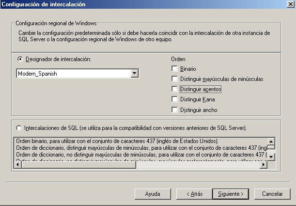 9) En la ventana Configuración de Intercalación desmarcar la casilla ‘Distinguir acentos’